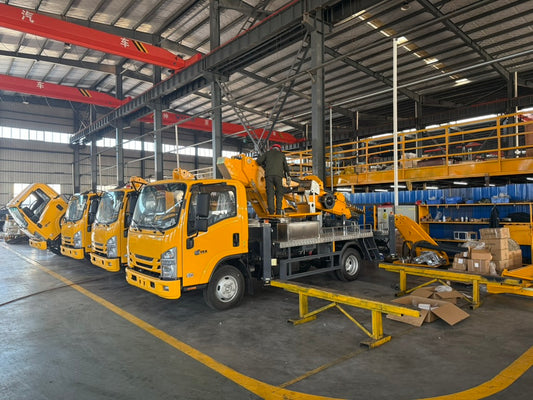 This is probably the world's safest and most stable aerial work platform truck. We offer ladder trucks, hanging basket trucks, and have also developed the world's first self-balancing hanging basket truck with mounted crane compound.