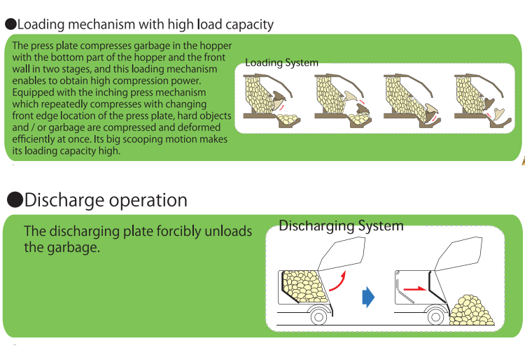 ③ Scraper with crushing function It can crush glass bottles, tree branches and other garbage in the process of filling, saving the volume of the tank and increasing the loading capacity.